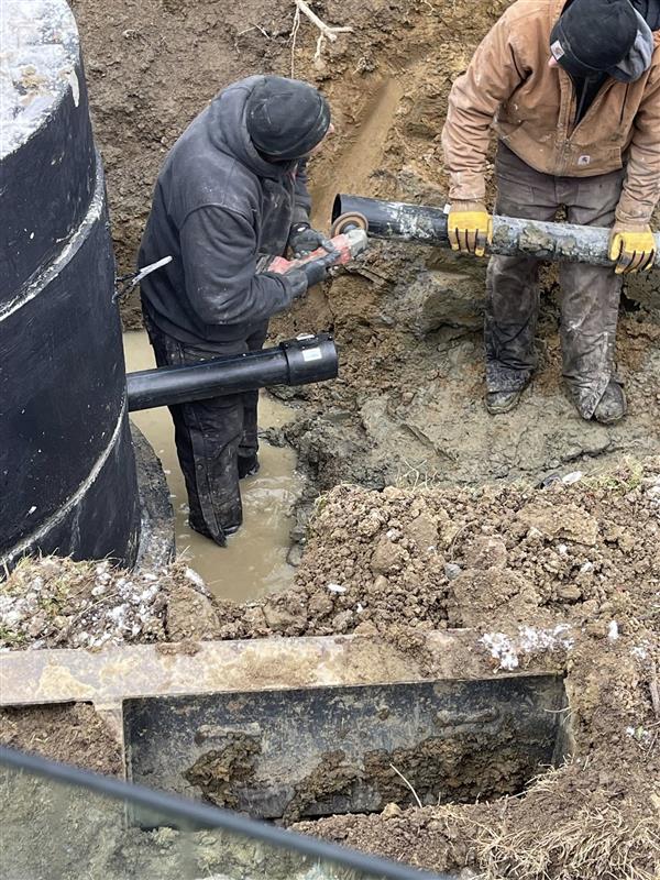 Friday, January 10, 2025 / Categories: Mansfield Job Sites Mansfield Sanitation at Work! Mansfield Sanitation at work! Here's a look at a bigger project recently completed for a local municipality. This station was not working properly due to rusted out steel pipe and faulty check valves. The pipe was removed and replaced, and an exterior valve pit was installed outside of the pump pit. We then installed all new check valves and connected them to the existing HDPE pipe using electrofusion technology. Installing an Inlet Line Waterline Repair Print 2311